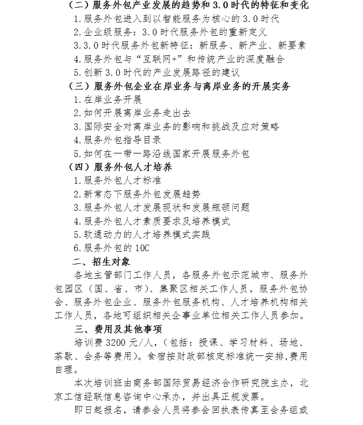 關(guān)于舉辦“一帶一路”背景下服務(wù)外包創(chuàng)新發(fā)展實務(wù)操作研修班的通知