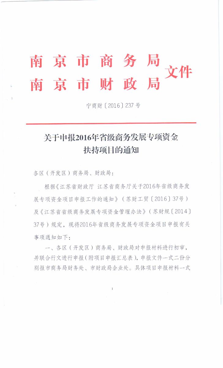 關(guān)于申報(bào)2016年省商務(wù)發(fā)展專項(xiàng)資金扶持項(xiàng)目的通知